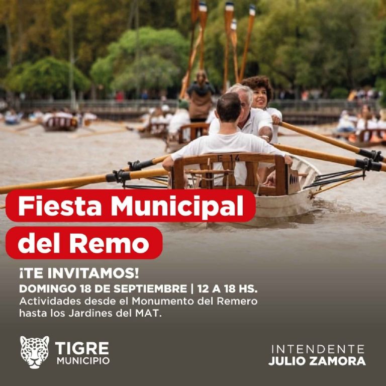 El domingo 18 de septiembre llega a Tigre la Fiesta Municipal del Remo. El evento organizado por el Gobierno local junto a los clubes de remo locales e instituciones de la comunidad dará comienzo a partir de las 12hs y contará con propuestas deportivas, culturales y gastronómicas.